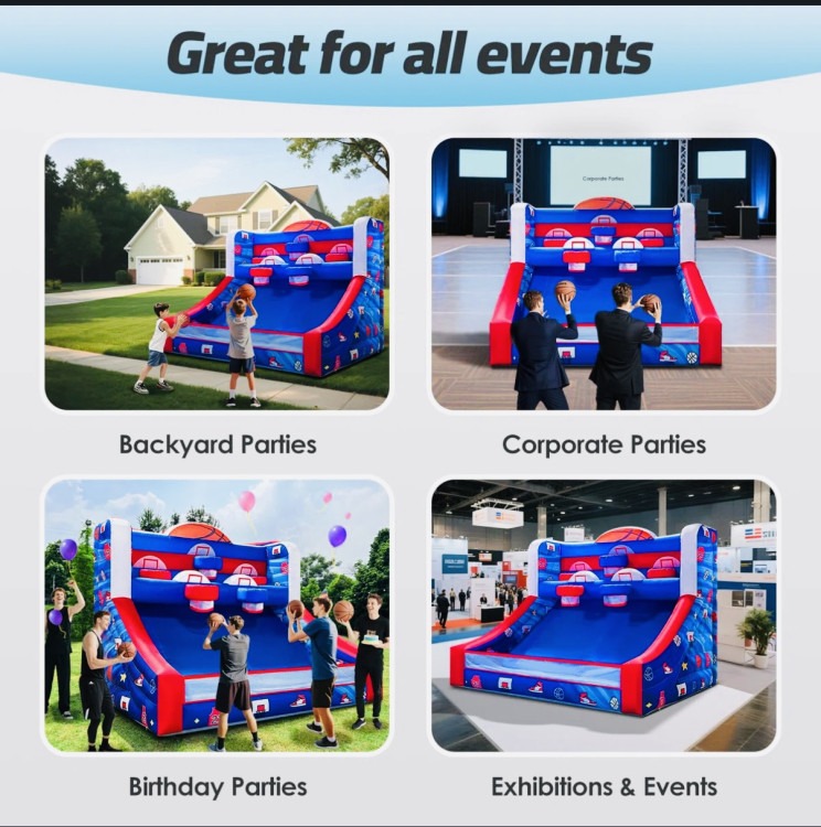 Basketball — a classic, portable game staple built for fast-paced pickup action, practice drills, or casual fun at parties and events. In a rental context, it arrives ready to play: durable, grippy surface for confident dribbling, predictable bounce for passing and shooting, and sized to match the players (youth or adult) so everyone can join in. Lightweight and easy to carry or stash in a trunk, it’s ideal for both indoor gyms and outdoor courts, driveway games, tailgates, or field-day setups. Use it for organized competitions, free-play warm-ups, team-building activities, or simply to keep kids engaged and active while parents socialize. Low-maintenance and versatile, a rental basketball quickly turns any open space into a place to practice layups, perfect a free throw, run drills, or gather friends for a game that needs only a hoop and energy.