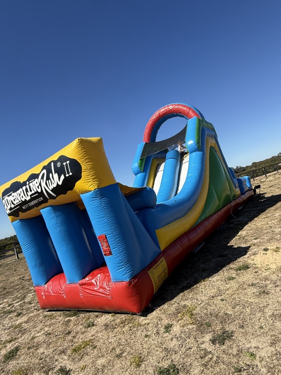 Make a big splash with this 34-foot waterslide featuring a towering main slide and an integrated rock wall climb. Designed for backyard parties, poolside events, or summer festivals, the unit combines an exciting descent with an active climb-up, so guests can stay engaged and move quickly from the rock wall to the sliding lane. The tall slide gives riders a fast, thrilling ride into a splash pool, while the rock wall adds an adventurous challenge for climbers of varying skill. Built for repeated use at events, this waterslide is ideal for teens and adults as well as older kids who meet height and safety guidelines. It’s a show-stopping centerpiece that delivers high-energy fun and cooling relief on hot days.