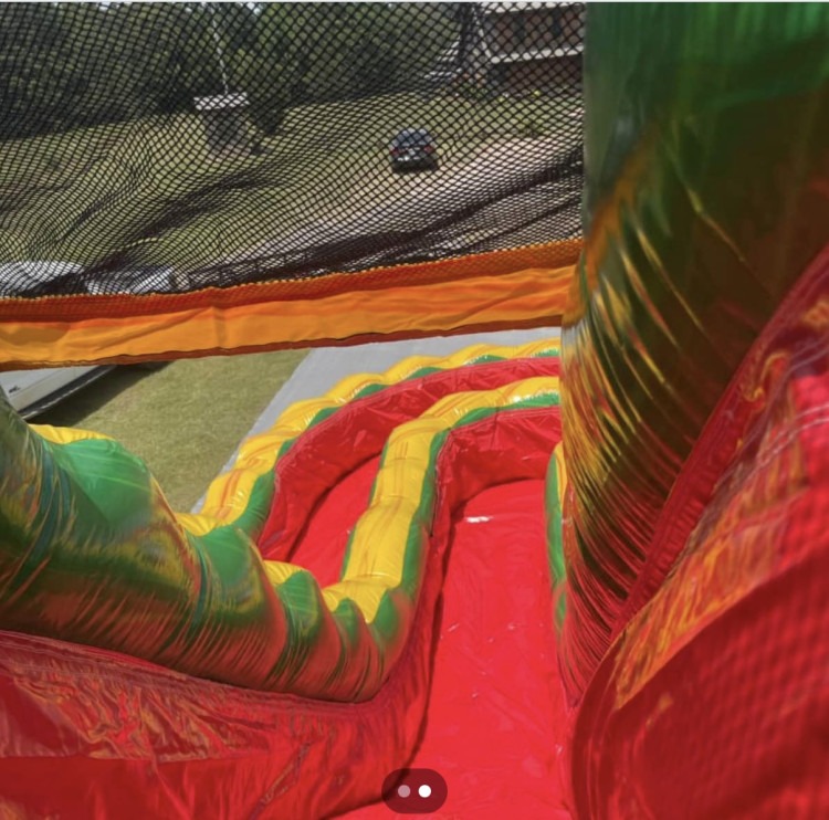Bring high-energy, wet-and-wild fun to your next party with this 19-foot dual lane waterslide. Bright yellow, green, and red panels create a festive look while two side-by-side lanes let friends race each other for double the excitement. The slide’s steep angle delivers a fast, thrilling descent, and an 18-inch-deep landing pool provides a refreshing splash at the bottom to cool off on hot days. Built-in water hookups keep the sliding surface consistently wet and slippery, and safety netting at the top keeps riders secure before they launch. Sized to fit most backyards, this slide is ideal for older kids, teens, and adventurous adults—perfect for birthday parties, backyard barbecues, and summer events.